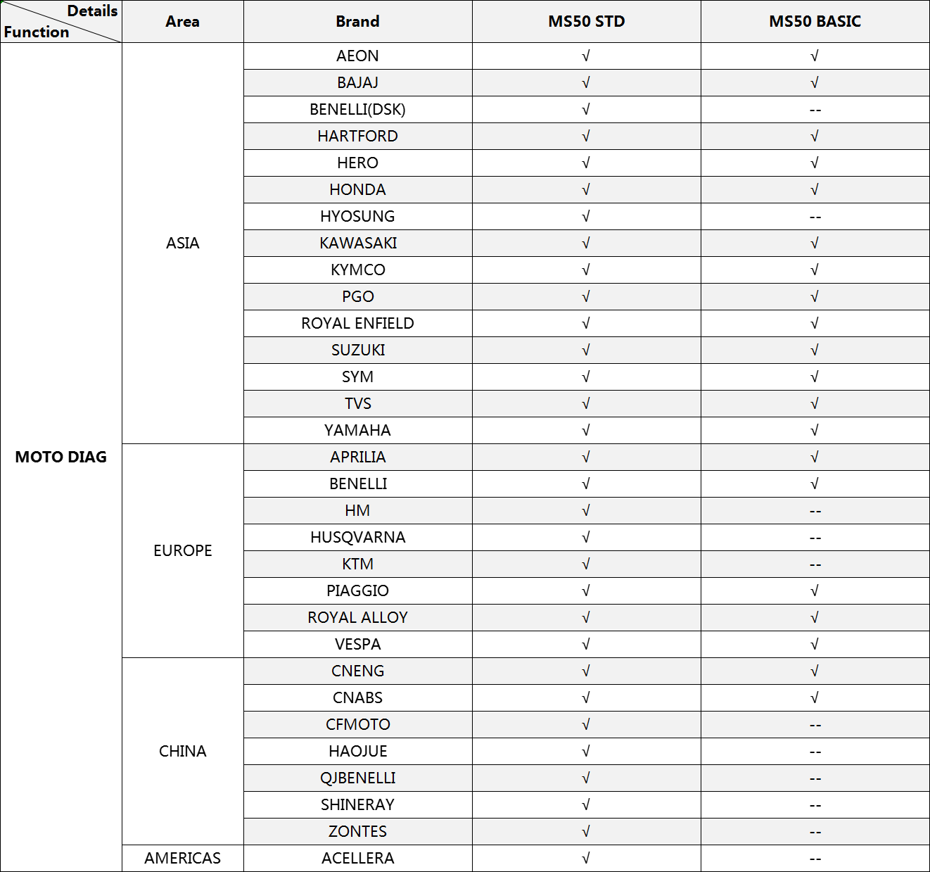 It has two configurations, MS50 STD & MS50 BASIC. Pls check coverages in 'Function Manual'.